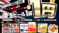 ■内容:生ビール(ザ・プレミアム・モルツ)を何杯でも1杯1円でご提供(定価198円)